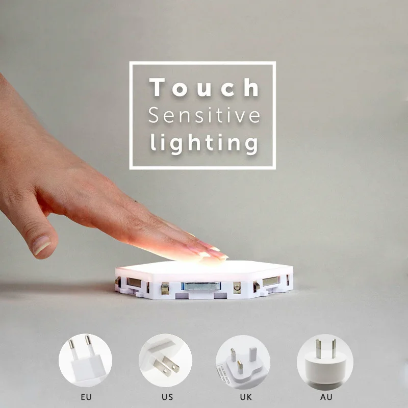 Светодиодный модульный светодиодный светильник сенсорного типаШестиугольный модульный светильник s соединяется с помощью магнитного притяжения, который может использоваться как настенный светильник s, с сенсорным светильник и режимом тушения, который может быть выключен и включен с помощью сенсорный светильник или простой ход.