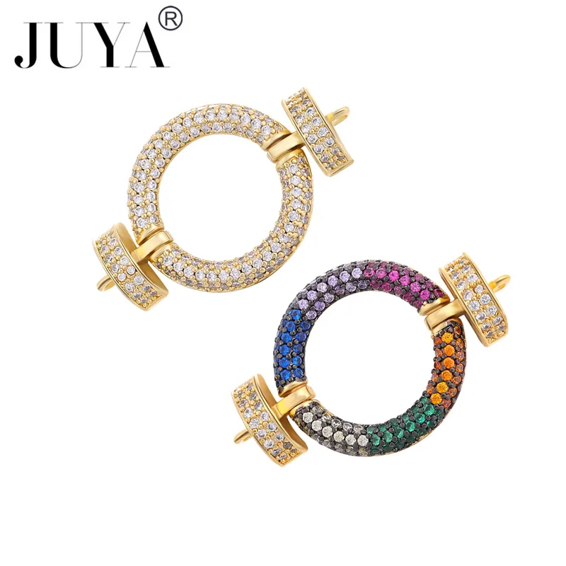 Застежки JUYA с фианитами для изготовления браслетов, коннекторы с настоящим золотым покрытием, фурнитура для ювелирных изделий ручной работы сделай сам