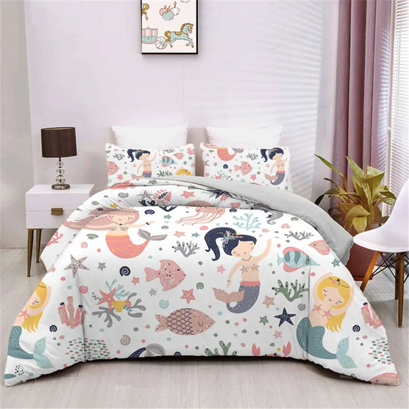 Розовое платье кроя принцесса, печати пододеяльник изображением русалки, купальный костюм покрывало милые покрывало 200x200 Детское покрывало для девочек крышка 140x200 детская кроватка для линии