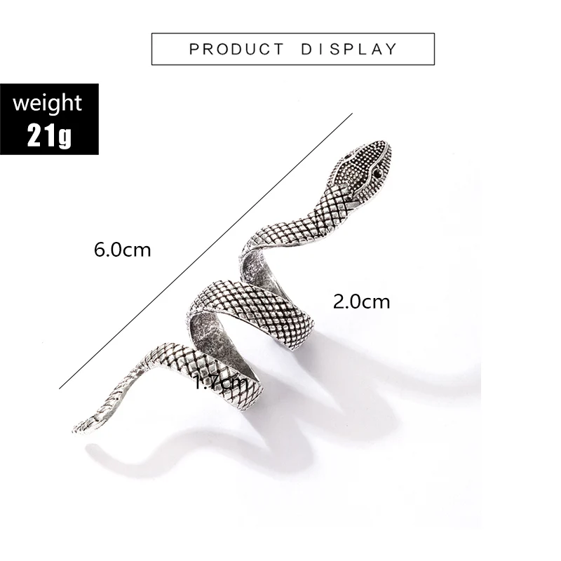 Tocona в богемном стиле со змеиным рисунком Открыть Один металлическое кольцо панк Регулируемый дизайн животных большое кольцо для Для женщин мужчин вечерние ювелирные изделия Anillo