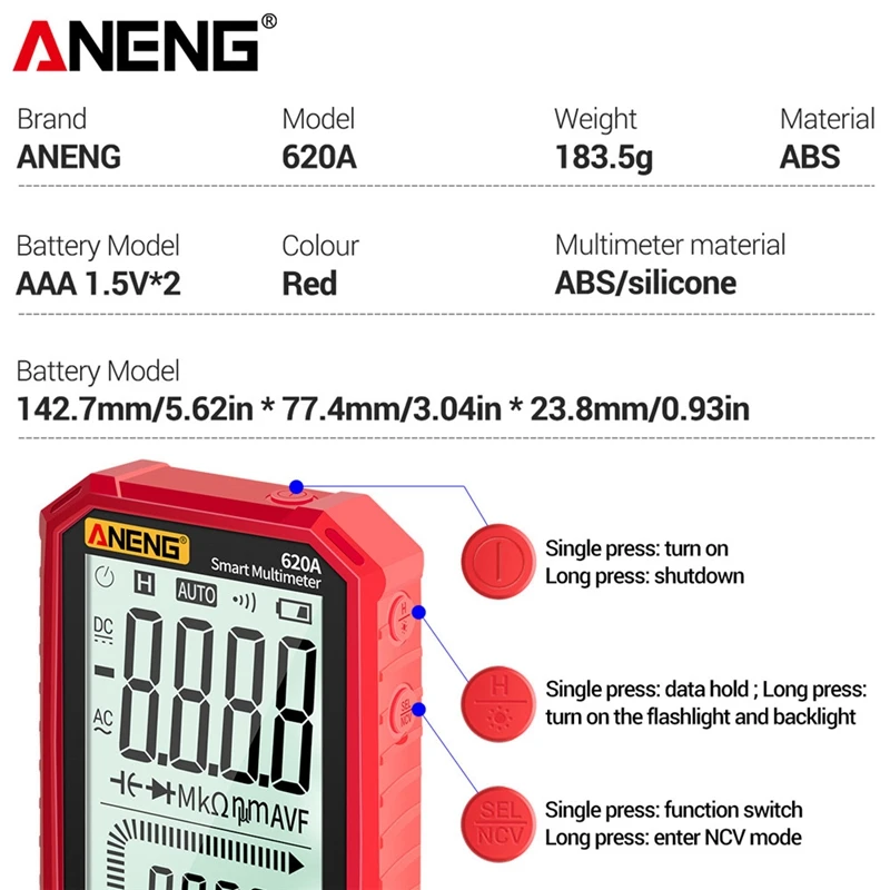 Цифровой мультиметр ANENG 620A с ЖК-дисплеем, 6000 отсчетов, постоя...