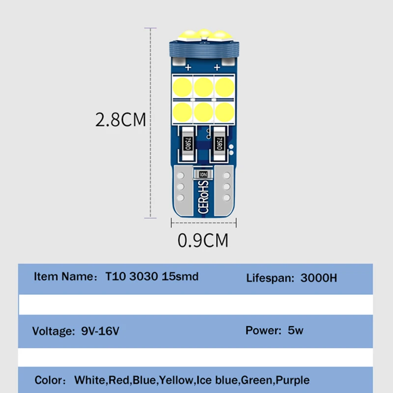 Название МоделиT10 3030 15SMD 194 168 W5W LED