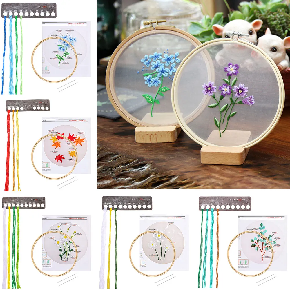 Набор для вышивания с изображением цветов, растений, круглая ткань, инструменты для шитья, орнамент Швейное Ремесло сделай сам