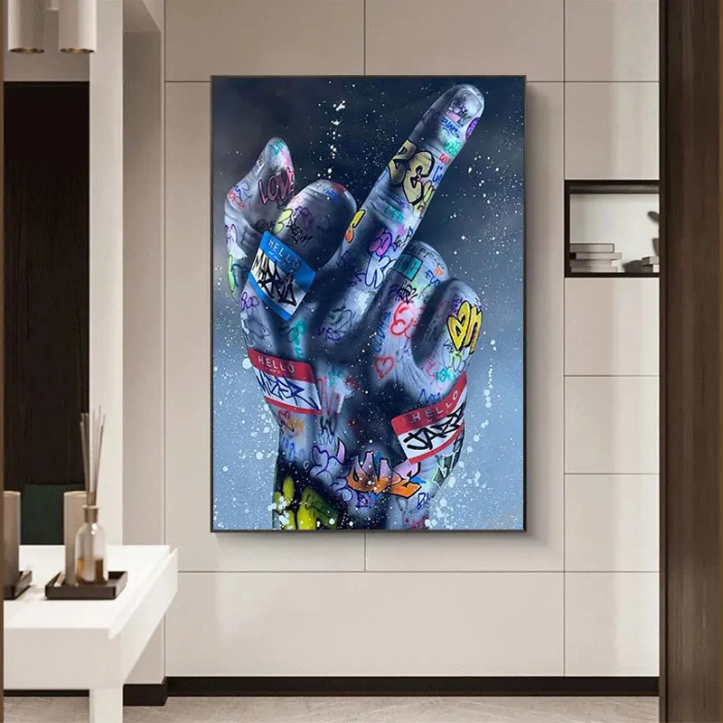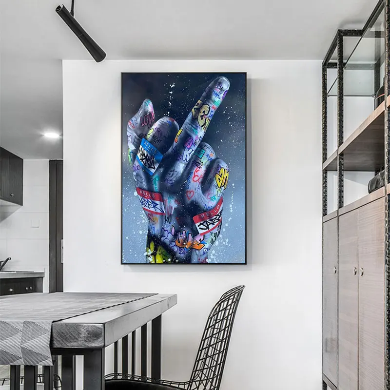 Голубые граффити на среднем пальце, плакаты и принты, современная улица, Абстрактная Картина на холсте, печать, настенное искусство, картины, украшение для дома