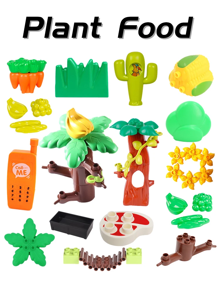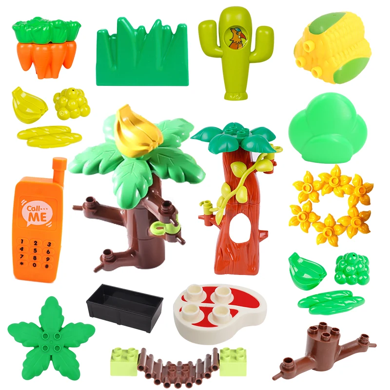 Аксессуары для творчества, кирпичи, трава, цветок, еда, виноград, банан, сотовый телефон, дерево, мясо, кукуруза, морковь, строительные блоки большого размера, игрушки для детей