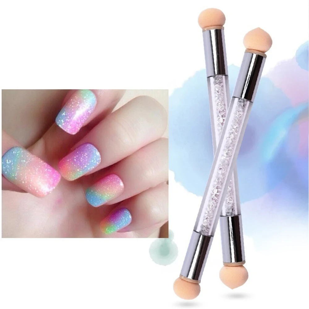 Двусторонняя кисть для градиентного затенения, точечная кисть, губка, головка для стразы, ручка для дизайна ногтей, инструмент для рисования ногтей, Прямая поставка