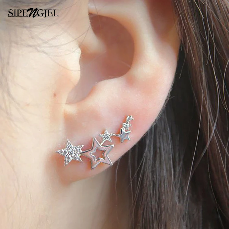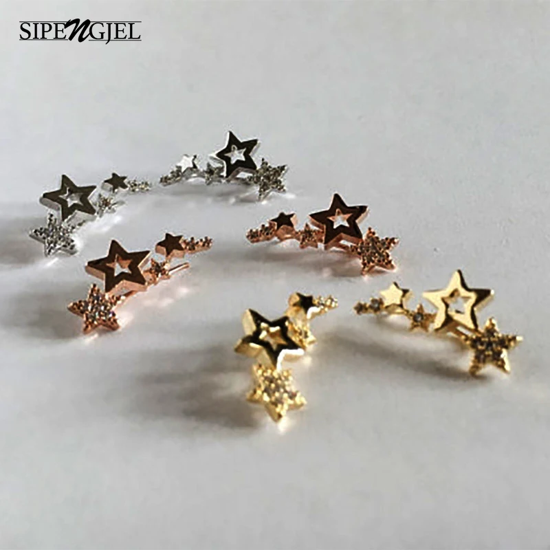 SIPENGJEL Модные Элегантные Простые серьги-манжеты с кристаллами в виде звезд для женщин, без пирсинга, женские серьги, ювелирные изделия для девочек, подарки 2021