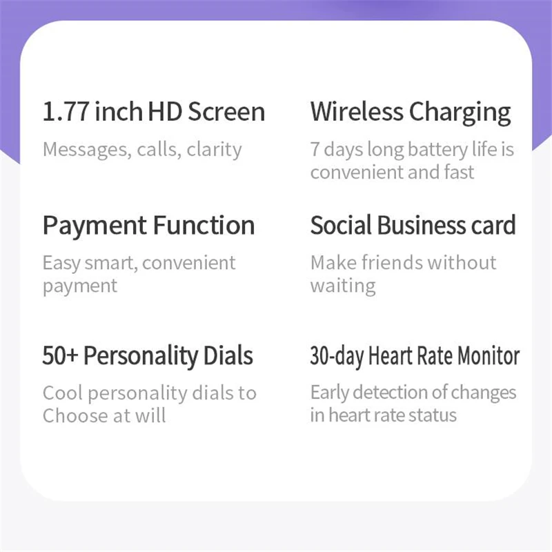 1. Следите за своим здоровьем:Трекер сна, напоминание о сидячем положении, пульс/кровяное давление/мониторинг кислорода в крови.2. Хороший помощник для тренировки:Шагомер, сожженные калории, расстояния, спортивные режимы.3. Хороший помощник для повседневной жизни:При подключении к телефону: Синхронизация уведомлений (напоминание о входящих звонках, сообщения и т. Д.), музыка bluetooth и т. Д.Приложение с раздельным экраном, 3d-динамическим циферблатом, погодой, поднятием запястья, будильником, секундомером, поиском моего устройства, калькулятором и т. д.