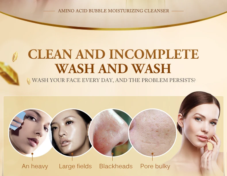 Аминокислотное пузырьковое увлажняющее очищающее средство для пор, средство для мытья лица, уход за кожей лица, лечение морщин и очищение