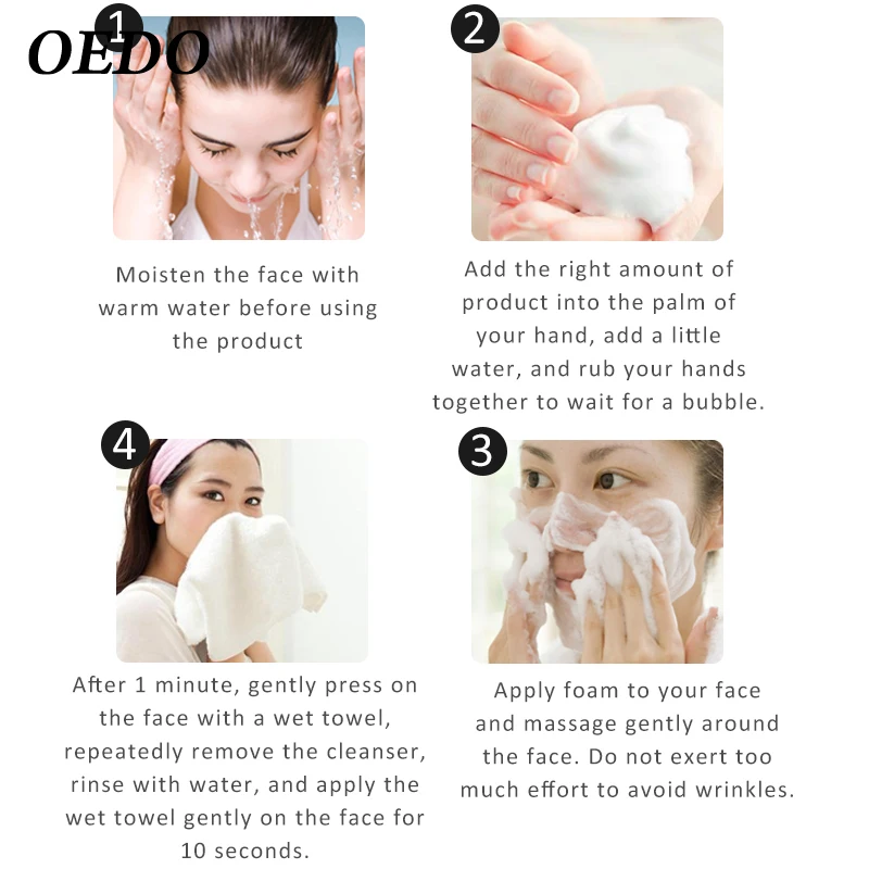 1. Увлажняет лицо теплой водой,2. Возьмите необходимое количество продукта на ладонь,3. Добавьте немного воды, обе руки быстро протрите равномерно, чтобы произвести пену,4. Пена наносится на лицо, мягко массирует, медленно по всему лицу,5. Во избежание морщин. Через минуту, с влажным полотенцем, мягко нажмите на лицо, повторите несколько раз, чтобы удалить очищающее средство для лица.6. В водную краску, в то время как лицо с прохладной водой полотенце светильник применить 10 секунд.