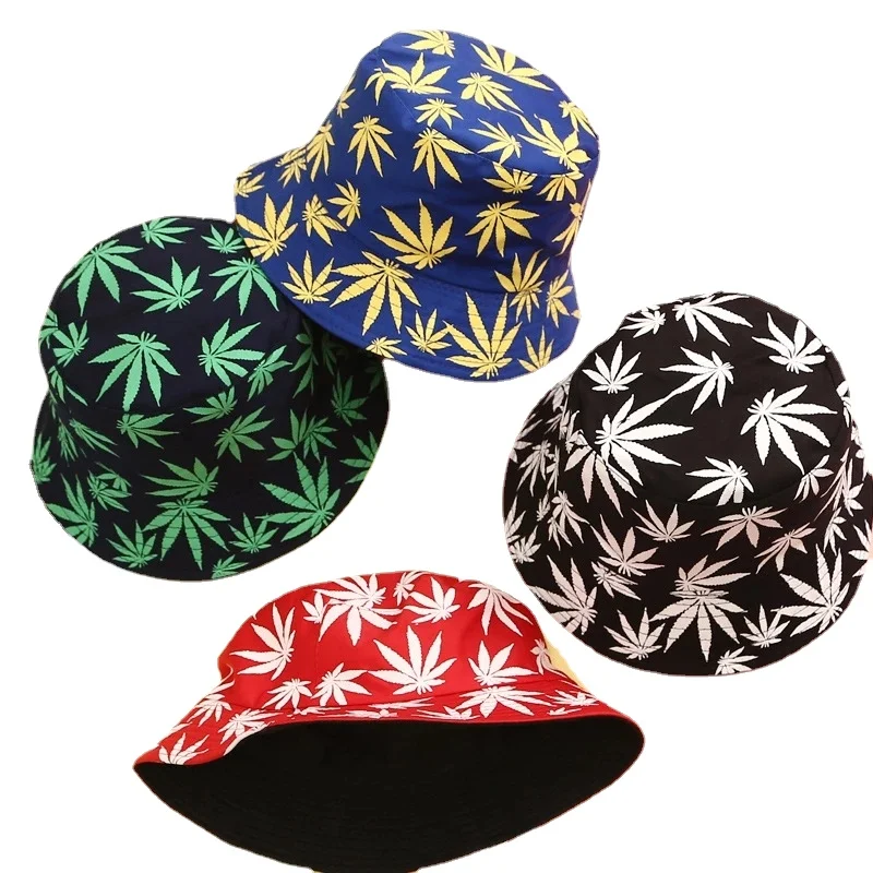 Шляпа рыболовная хлопковая в стиле хип-хоп с принтом кленовых листьев