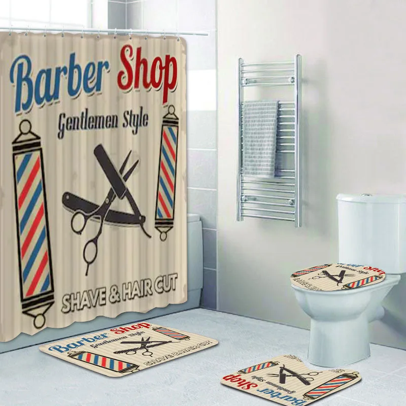 Hipster Парикмахерская плакат душ Шторы Комплект Уход за волосами и бритья Парикмахерская Ванна Шторы s Ванная комната Господа декор для салона красоты