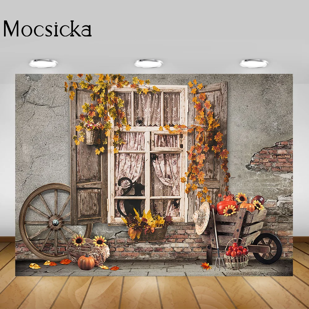 Осень портретной съемки в стиле ретро окна потрепанный фон с изображением кирпичной стены кленовый лист романтический свадебный для невест душ фон для фотосъемки