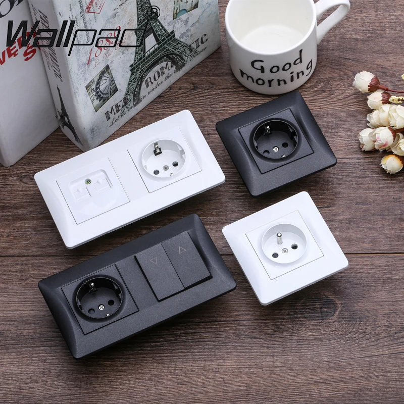Европейская розетка с Кепки матовый Пластик Панель Wallpad черный Е...