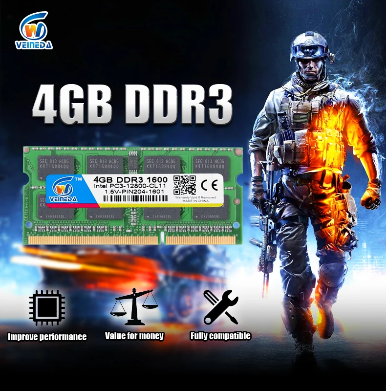 VEINEDA ram ddr3 4gb 8gb sodimm ddr3 1333 1600mhz ram для Intel amd laptop 4gb ddr3 1333 204pin
