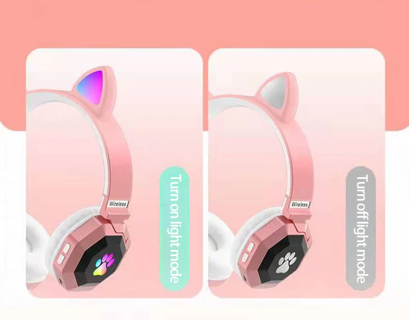 Беспроводные + Проводные светодиодные наушники с кошачьими ушками, шумоподавляющие наушники, Bluetooth-гарнитура для молодых людей, детей, поддержка TF-карты, разъем с микрофоном