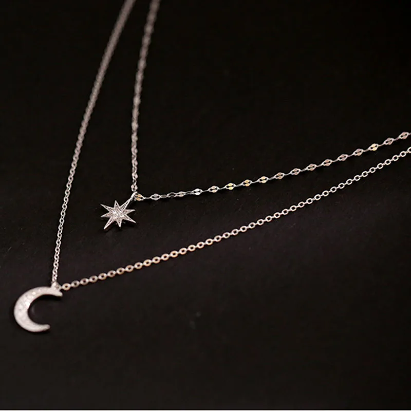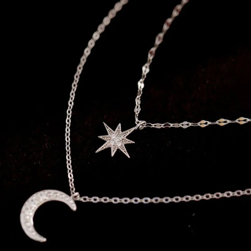 2021 цепи ожерелье Многослойные Луна медный металлический Серебряный кулон ожерелье для женщин новый тренд, Женские Ювелирные изделия, воротник восьмиугольная подвеска