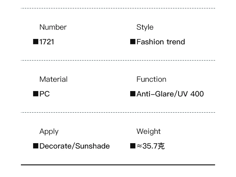 ПараметрыТоварЗначениеПолУнисексМесто происхожденияКитайПартномер1721СтильСпортивные очкиМатериал линзПКМатериал оправыПКВозрастМужчины, женщины и мужчиныОптический атрибут линзUV400Цвет оправыДругое