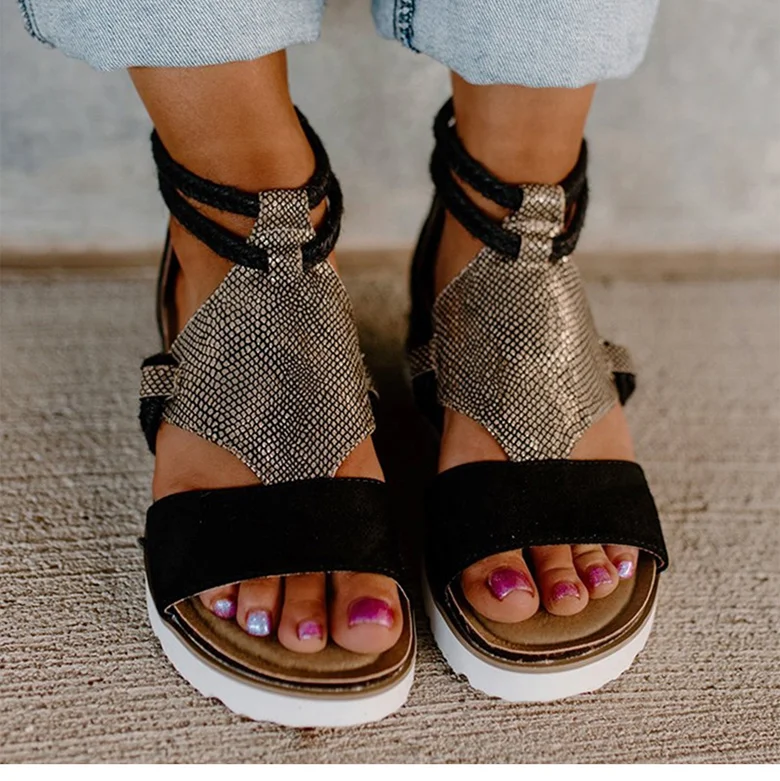 Сандалии Женские однотонные на танкетке, босоножки с перекрестными ...