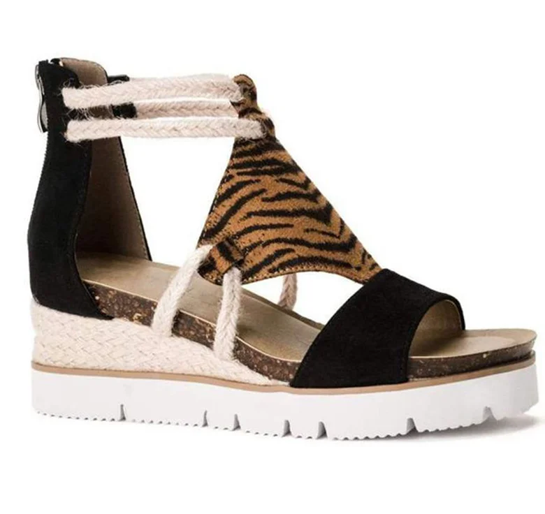 Женские босоножки на танкетке с молнией; Женские босоножки на платформе; Модель размера плюс года; Леопардовая Летняя обувь; Женские Босоножки на каблуке; Chaussure Femme