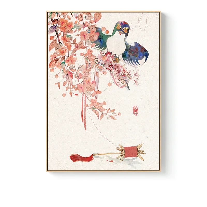 Китайский Стиль Весна цветков персикового дерева Холст Картина Классическая ласточка кайт плакатов и принтом группы Вентилятор настенные картины Декор для дома