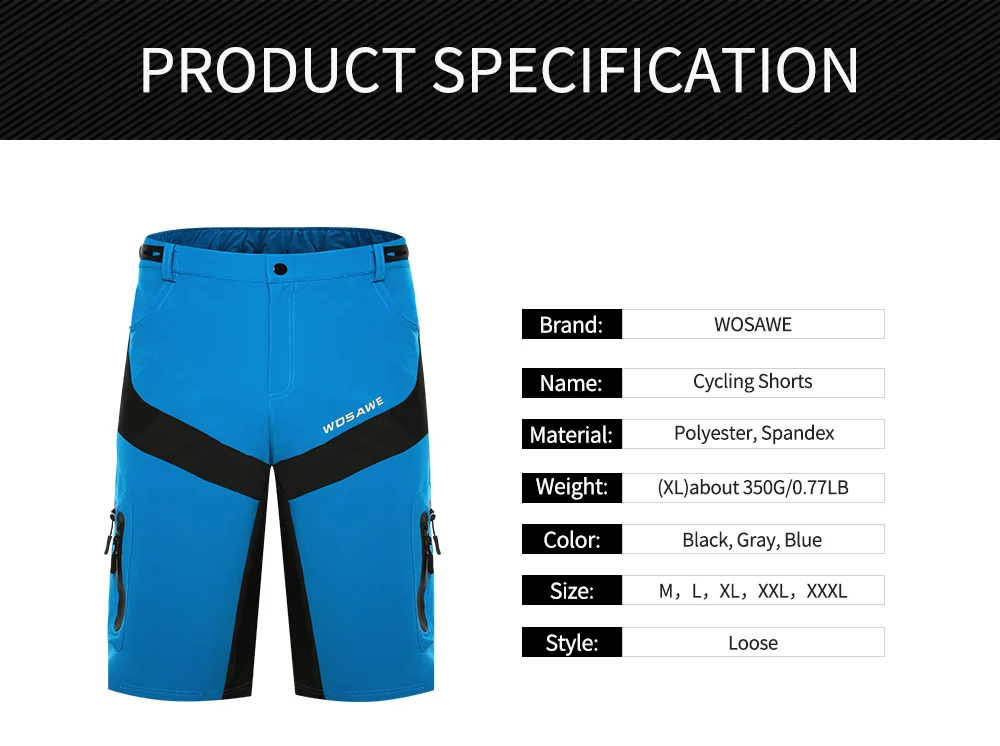 Велосипедные шорты WOSAWE MTB, Короткие горные велосипеды высшего к...
