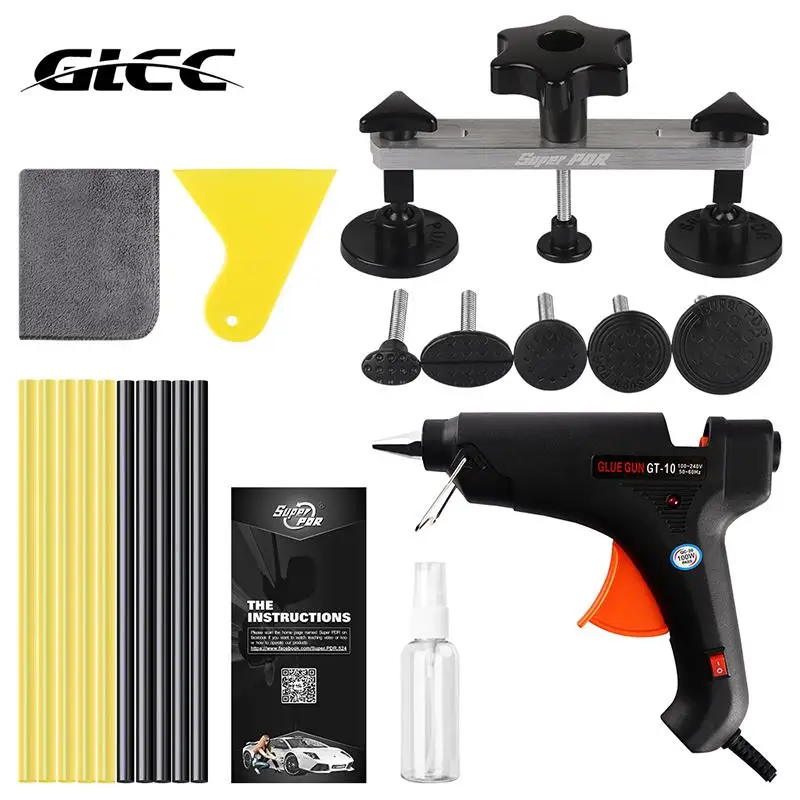 Набор инструментов для беспокрасочного ремонта вмятин GLCC, черный Съемник моста, клеевой пистолет, клеевые палочки, набор для удаления вмятин, ремонт автомобиля, град