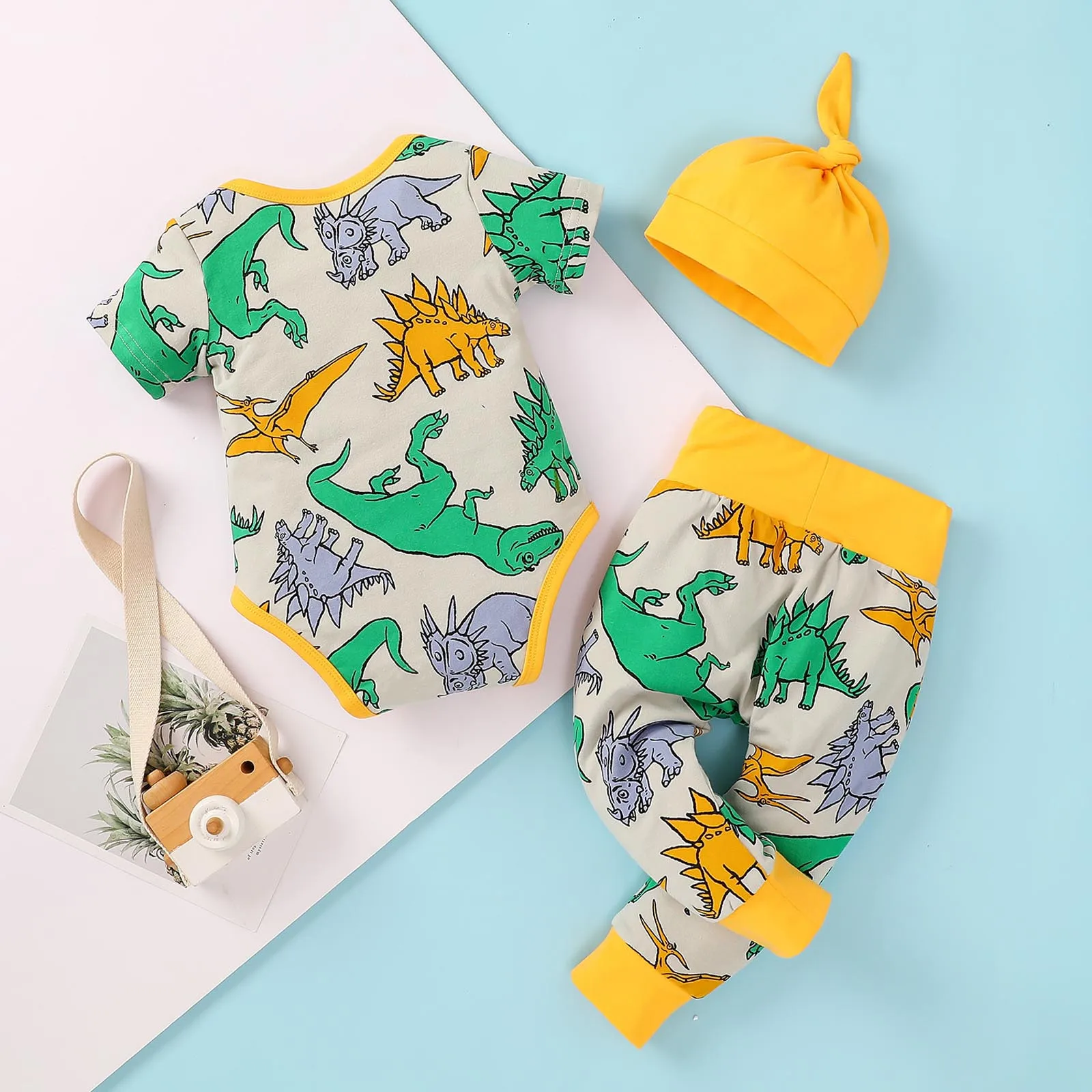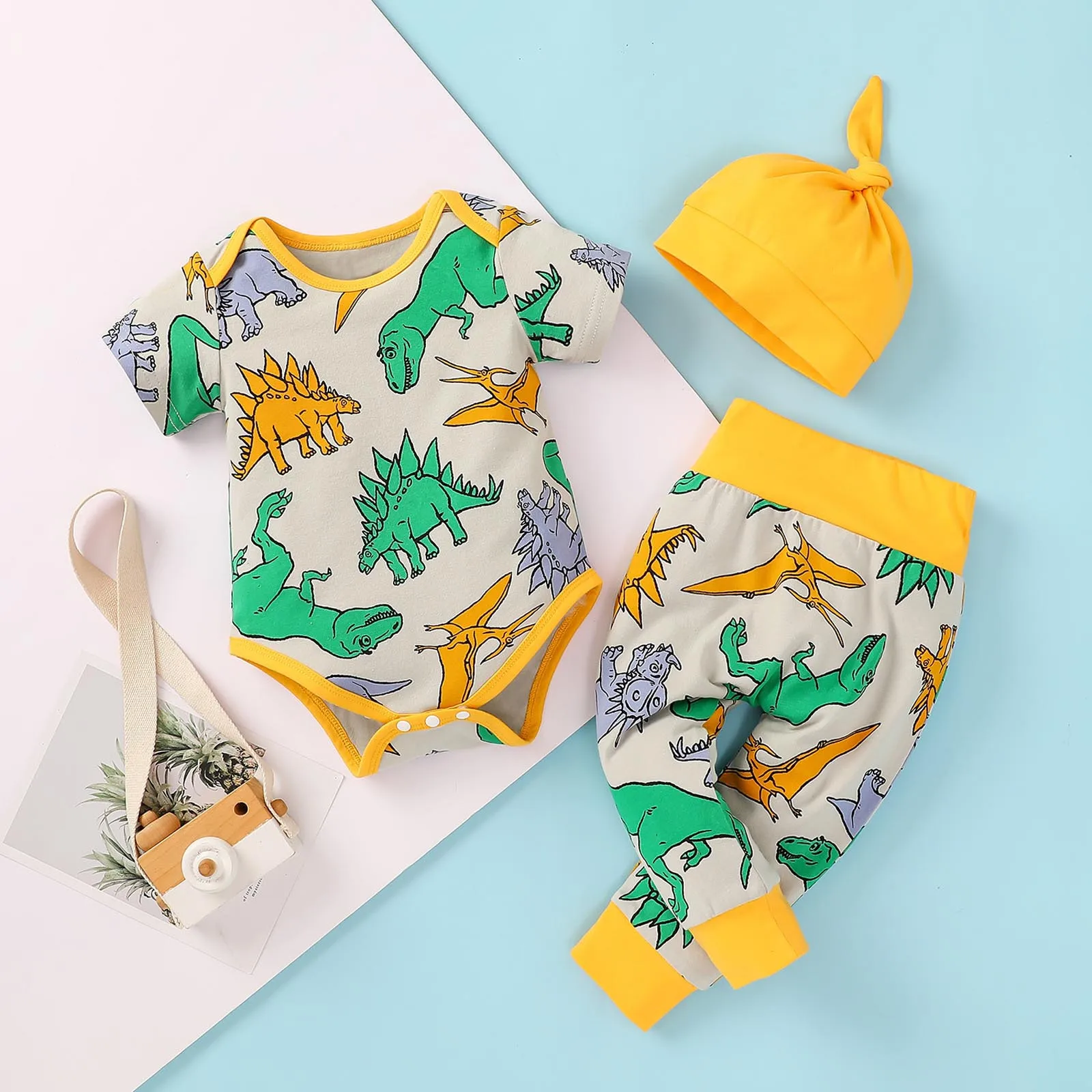 Модная одежда для новорожденных, Детский комбинезон для мальчиков с героями мультфильмов, с рисунком динозавра и штаны, наряды с шапкой, комплект одежды комплекты одежды roupa infantil menina vetement fille