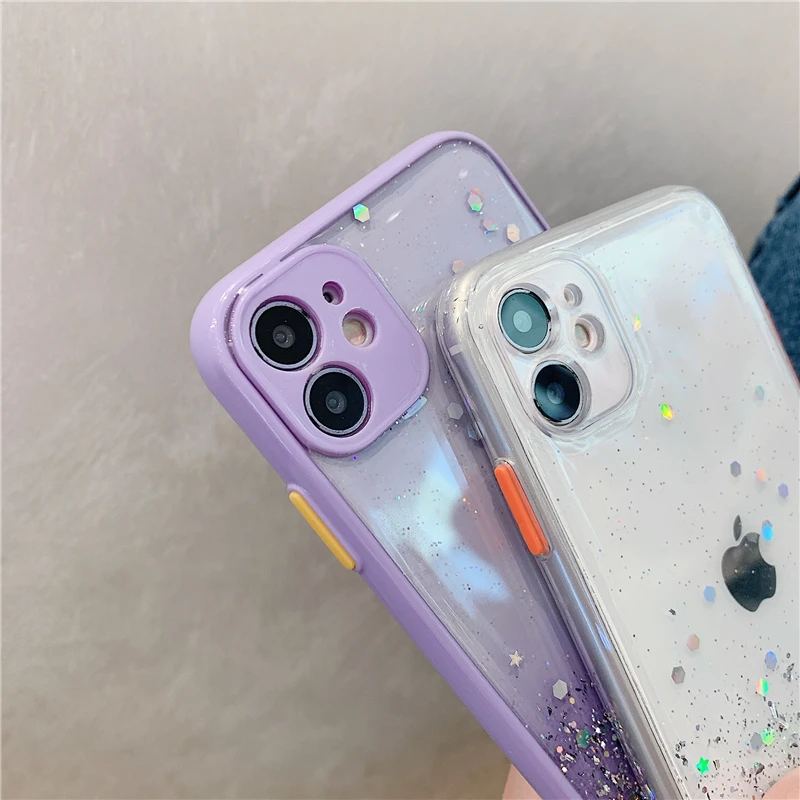 Блестящий Прозрачный чехол для iPhone 13 11 Pro Max 12 Mini XS X XR 6 6S 8 7 Plus SE 2 блестки карамельных цветов