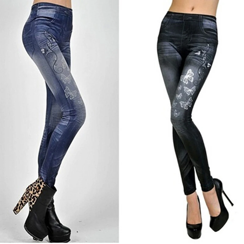 Женские леггинсы с принтом бабочки, повседневные облегающие джинсы