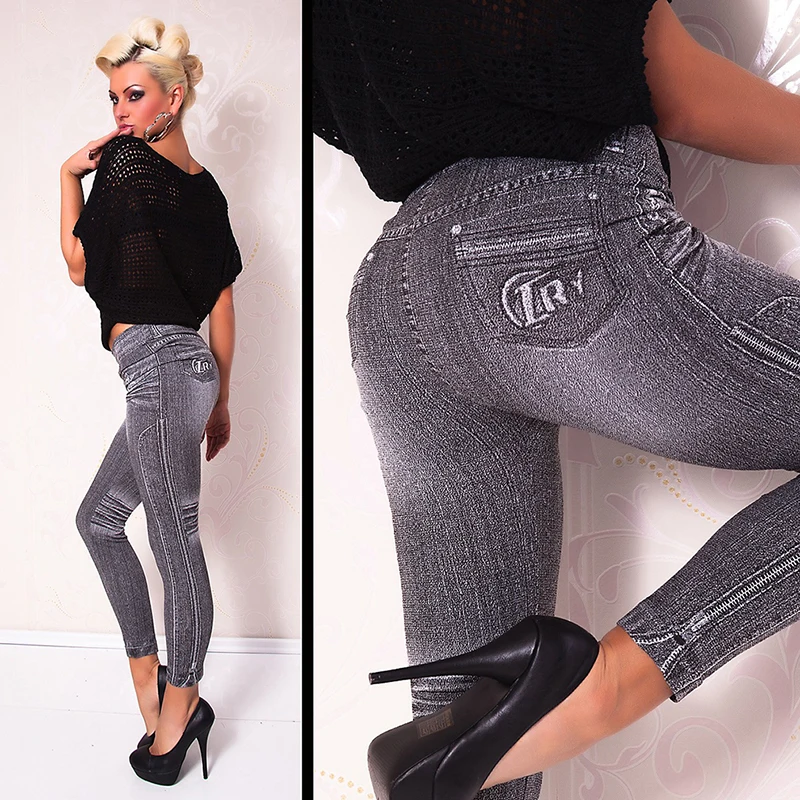 Женские сексуальные джеггинсы из искусственного денима, эластичные ...