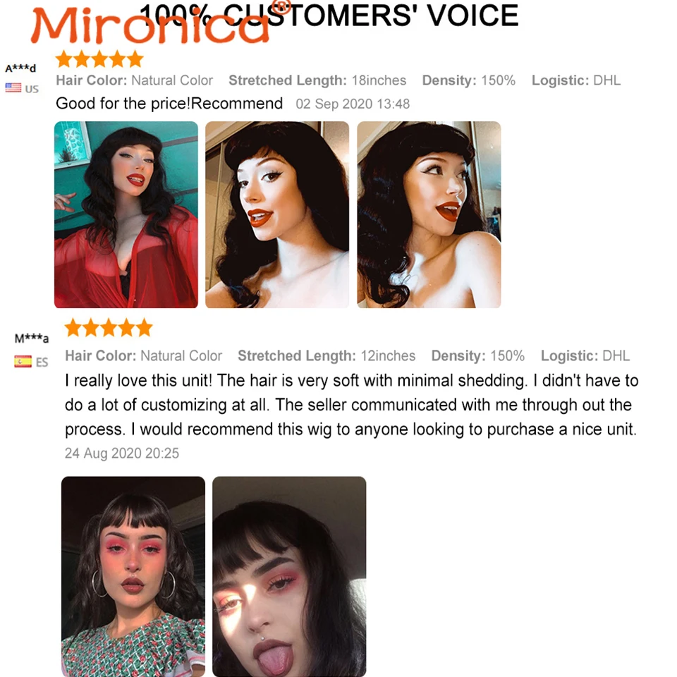 Парики из человеческих волос Mironica соответствуют длине от 8 дюймов до 24 дюймов, они выглядят очень красиво, независимо от того, снаружи или внутри.