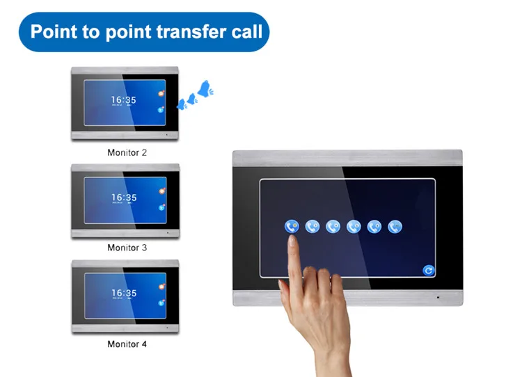 Простая установка самостоятельно с адаптером и кабелем, который мы предоставили в этом комплекте, внешний блок может подключаться к монитору внутри помещения проводным кабелем 4P. При подключении внутреннего монитора к беспроводному Wi-Fi роутеру или проводному сетевому кабелю, вы можете подключить мобильный телефон к домашнему монитору, затем мобильный телефон также может записывать видео или открывать дверь и т. Д. Широко используется в виллах, квартирах, Дома, отели, офисы, общественные здания и так далее.