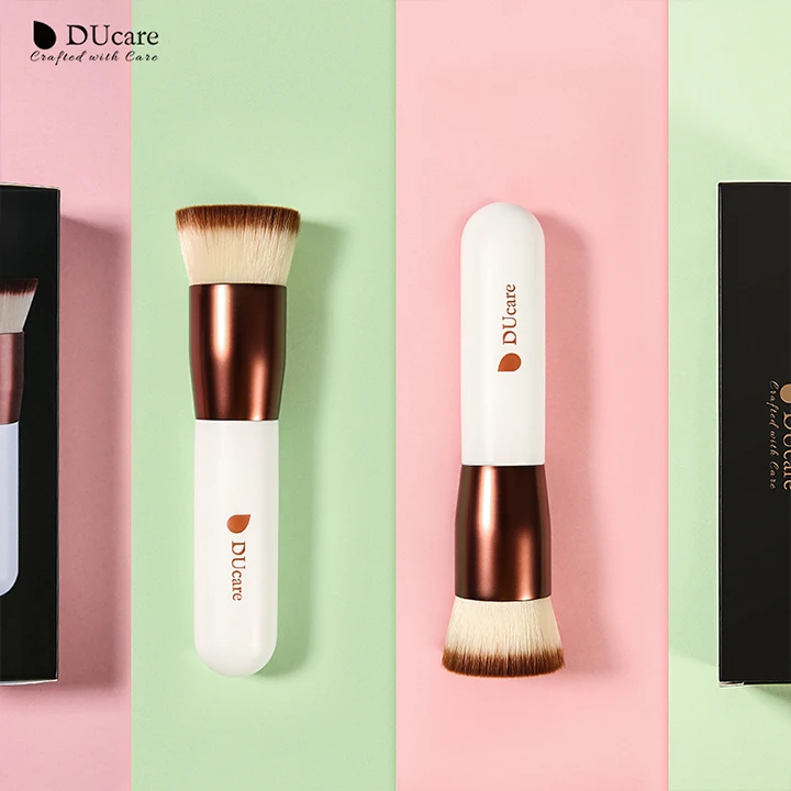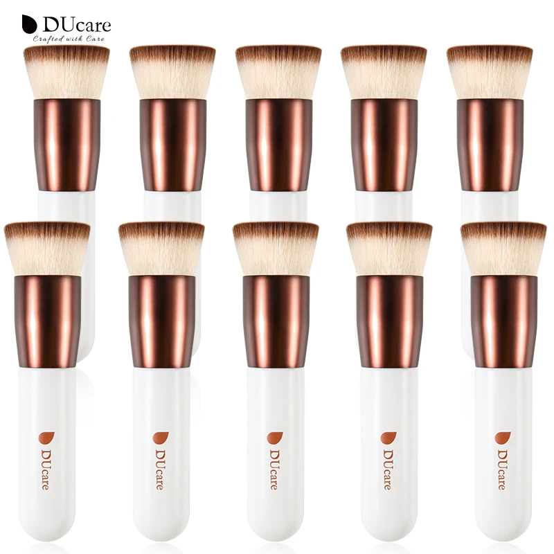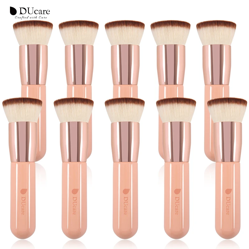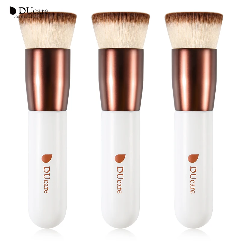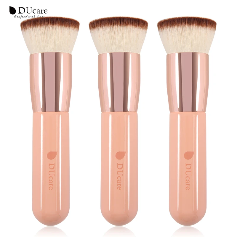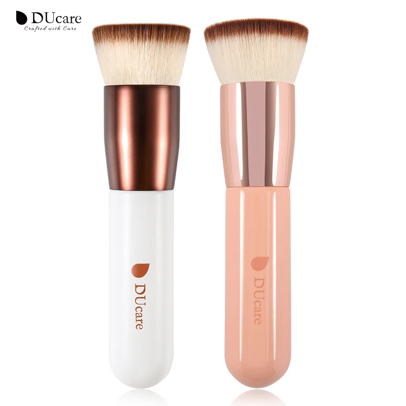DUcare плоская топовая кисть для основы кабуки, профессиональная Синтетическая Жидкость для смешивания минерального порошка, инструменты для макияжа, розовый золотой/белый