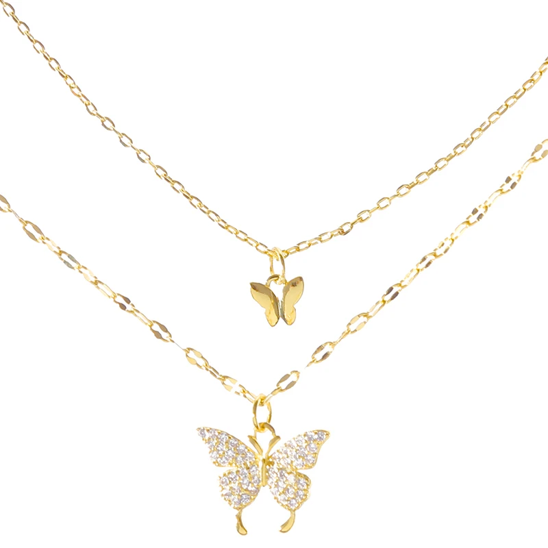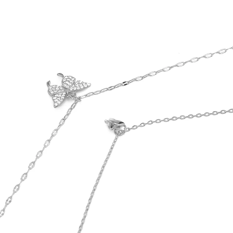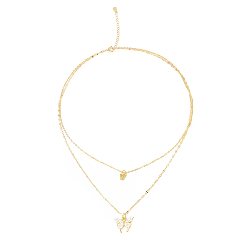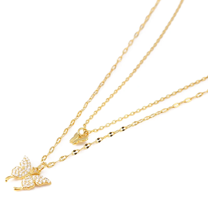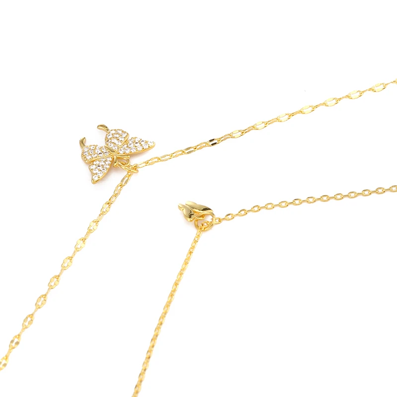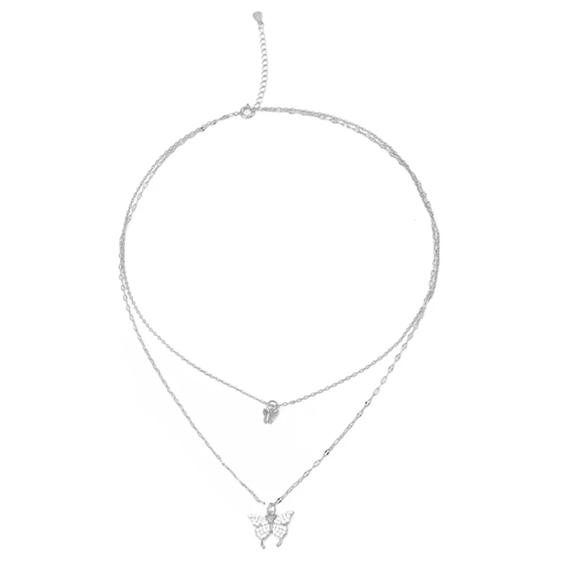 Женское двойное ожерелье с бабочкой, элегантная цепочка на ключицы с кристаллом, простой дизайн, 2021