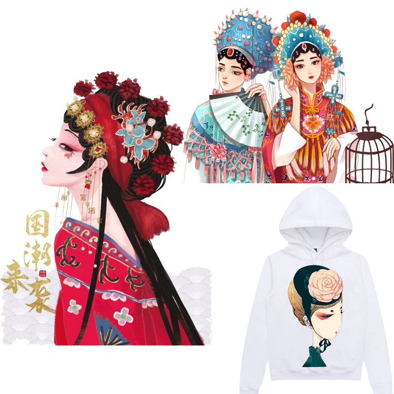 Пекинская опера Девушки патчи термо наклейки на одежду Железный На переноске для одежды термоклей патч Diy китайская аппликация