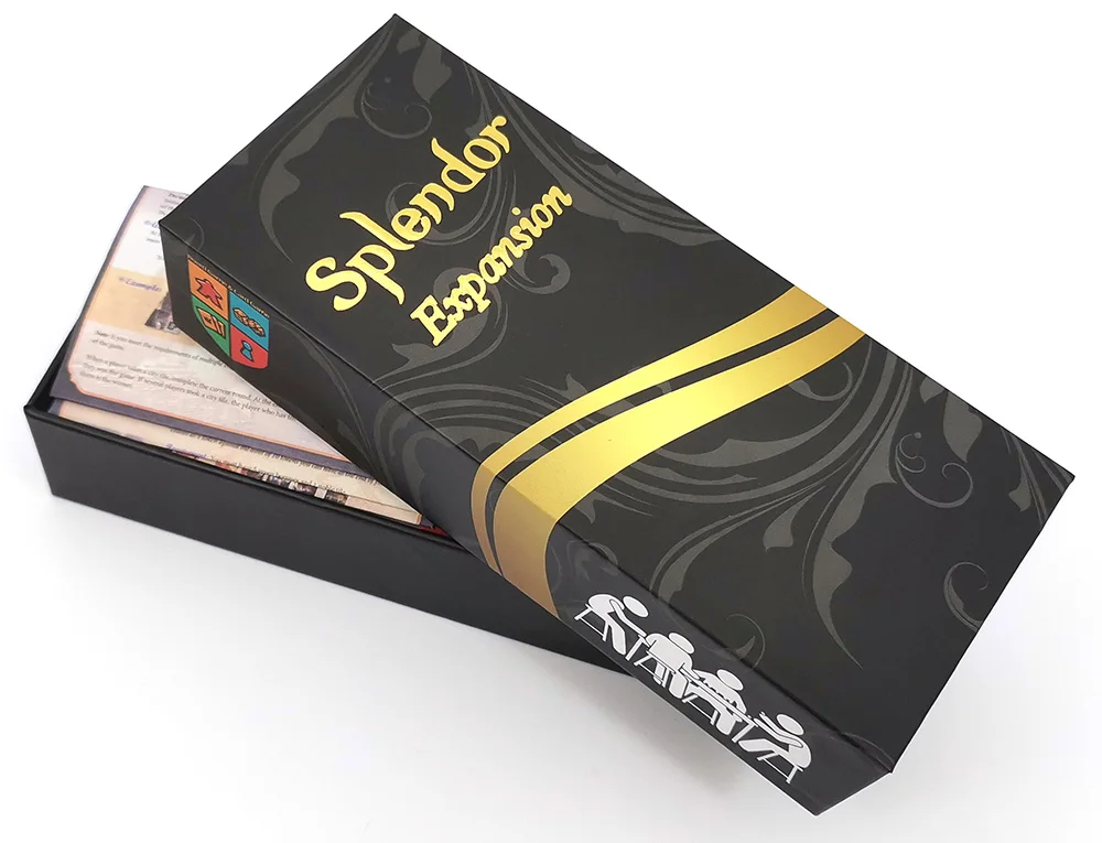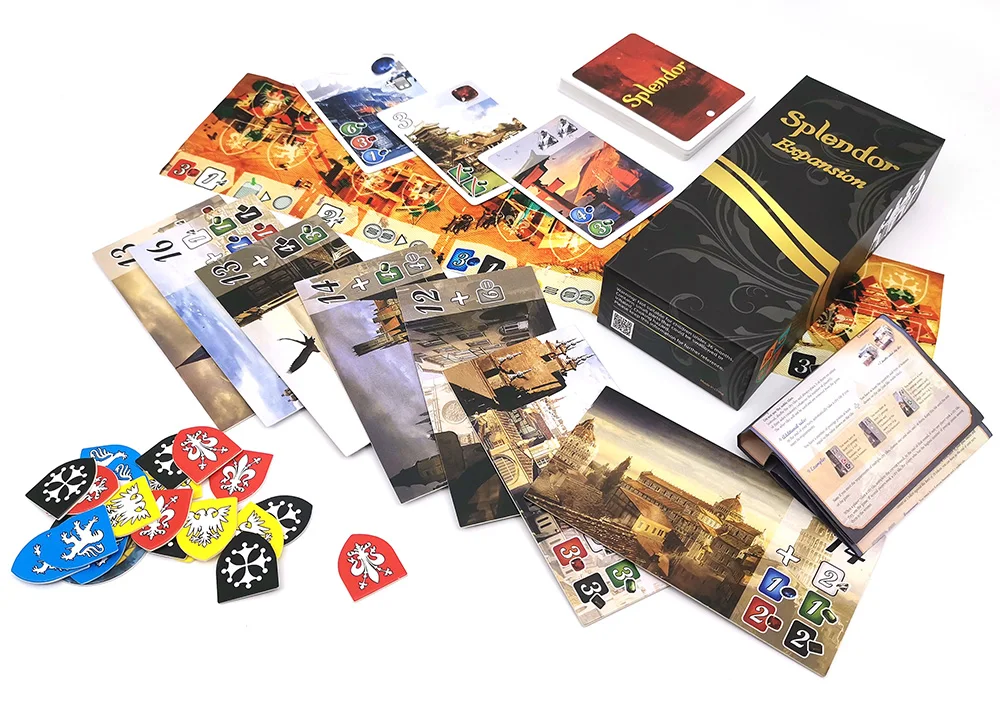 Splendor expansion = Жетоны для карт + 1 доска cltoh + 12 оплотов + Жесткая бумажная коробка + правила на английском языке