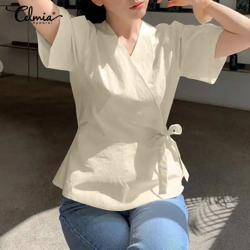 Летние сексуальные топы Celmia, стильная женская рубашка с коротким...