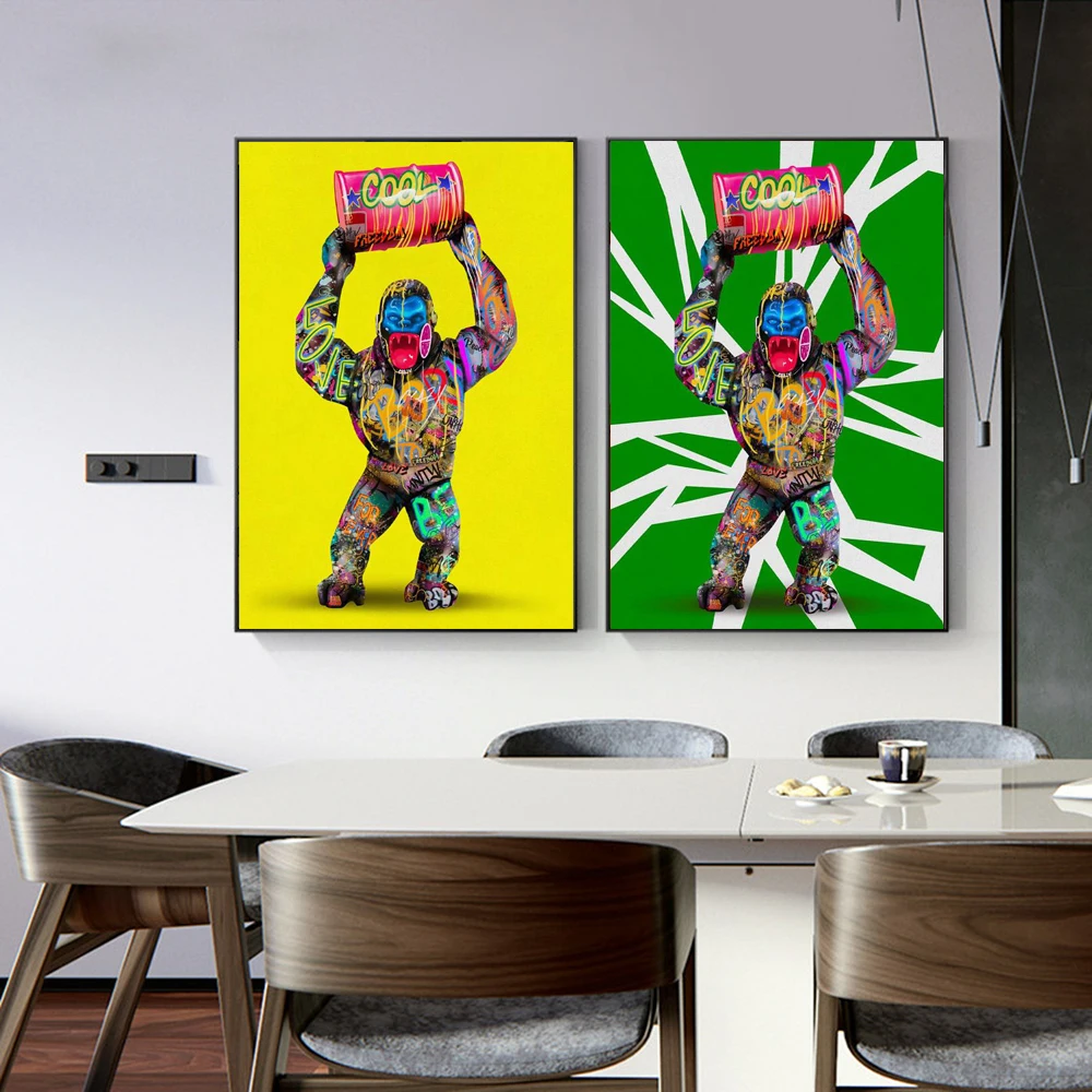 Акварель граффити Кинг-Конг Горилла холст художественные плакаты и принты настенный поп-арт живопись для детской комнаты настенный Декор без рамки
