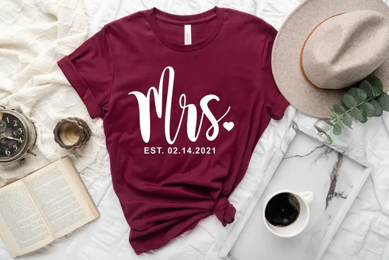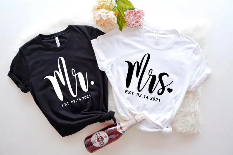 Г-н и кружки мистер и миссис и медовый месяц свадебное жены и узлов для молодоженов, ожерелье невесты Вечерние подарок рубашки для мальчиков 100% хлопок с круглым вырезом Футболка свободного кроя
