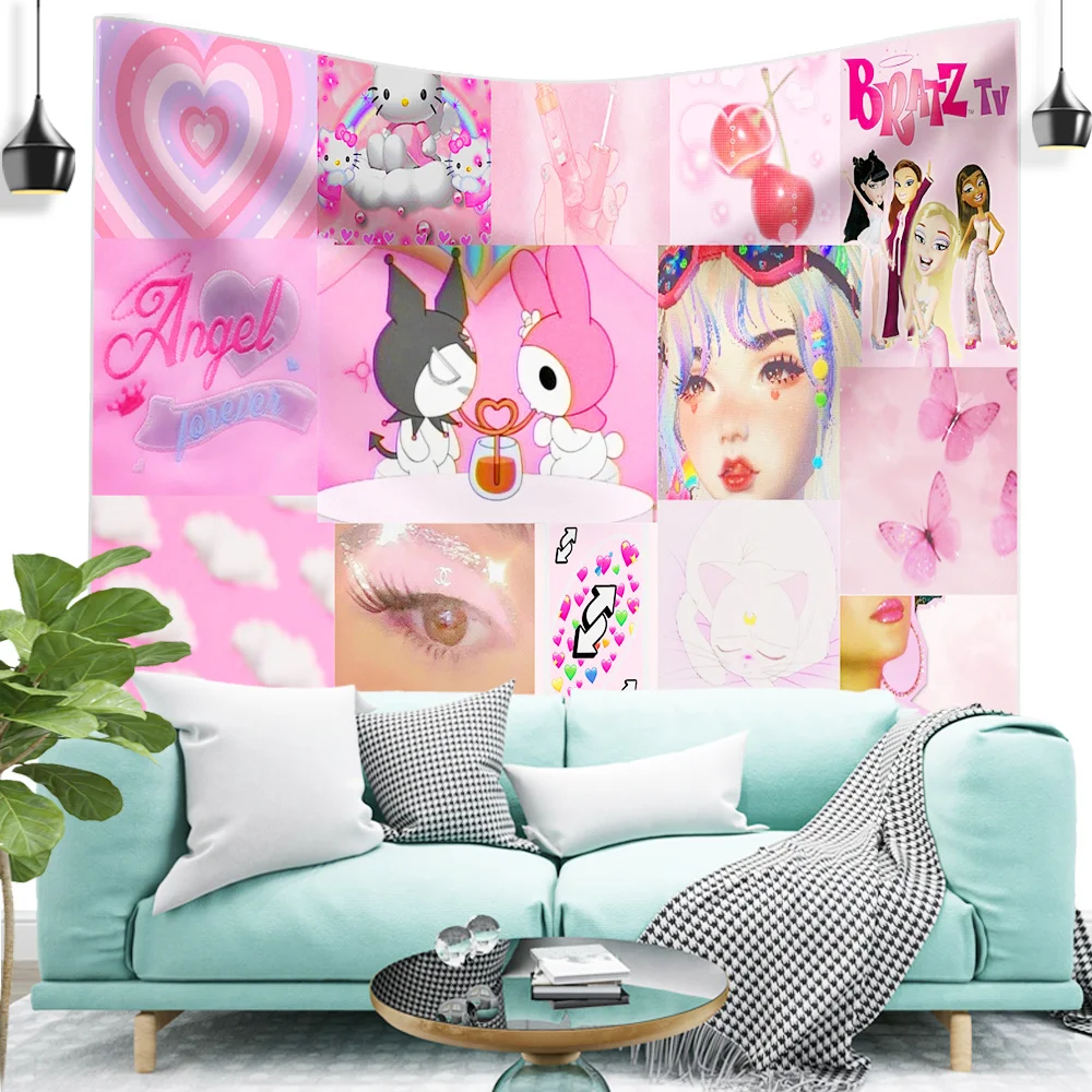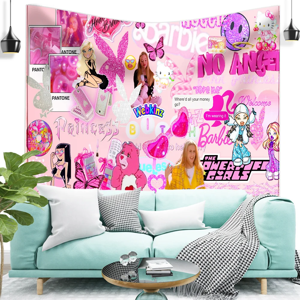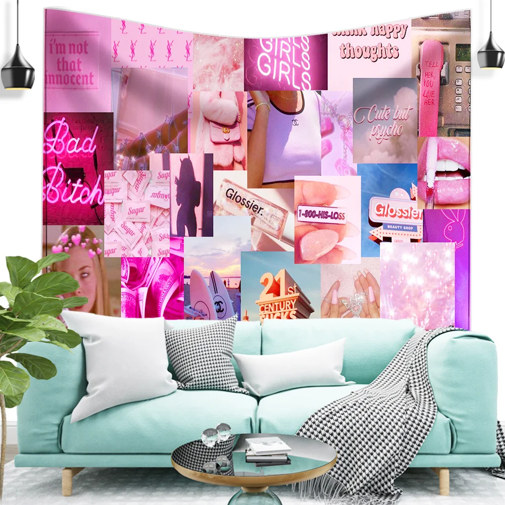 Название: Y2k, розовый эстетический гобелен, мозаичный стиль, хиппи, бохо, настенные гобелены, мандала, тканевый коврик, декор для гостиной