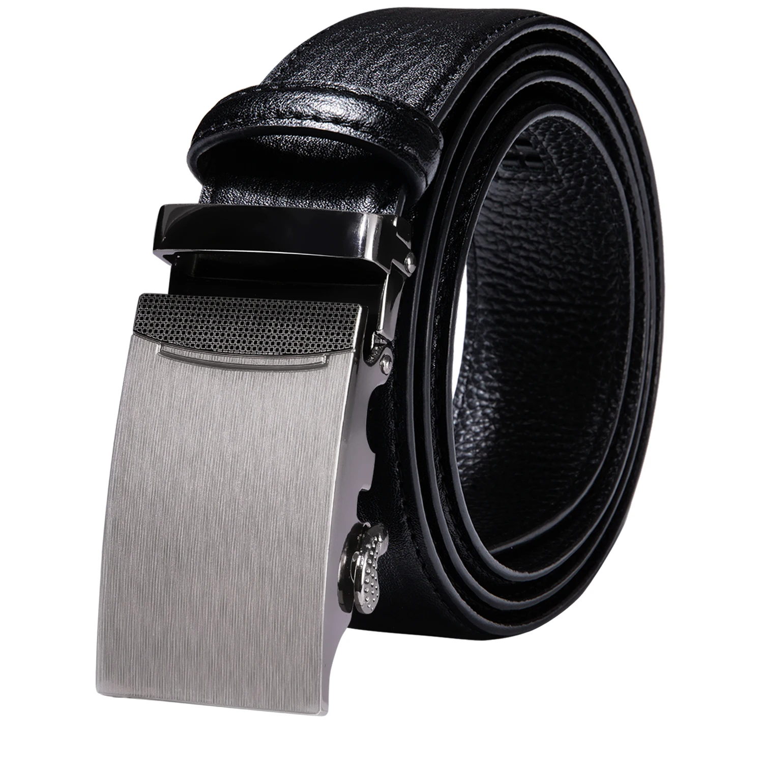 Ремень мужской кожаный, с автоматической пряжкой, черный, серебристый