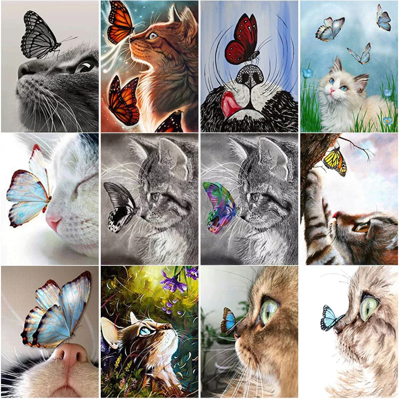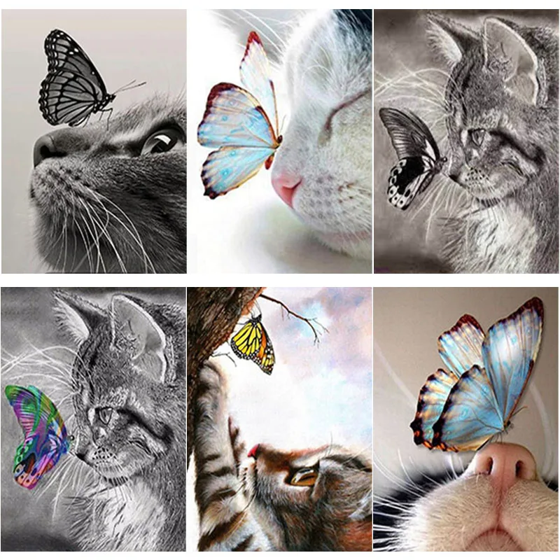 5D DIY Алмазная картина кошка/Бабочка Алмазная вышивка животное вышивка крестом полный квадратный круглый дрель ремесла домашний декор искусство подарок
