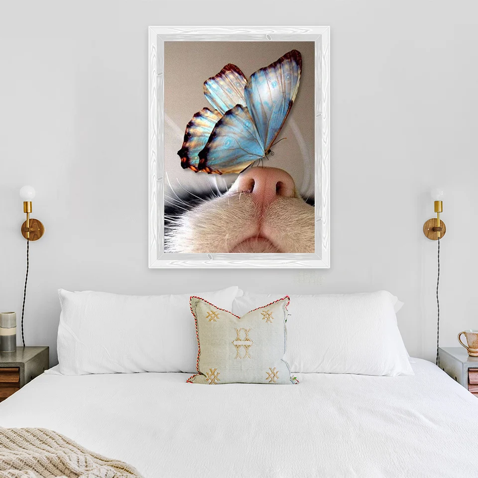 Алмазная 5D картина сделай сам, вышивка с кошкойбабочкой, животное, вышивка крестиком, полная выкладка, квадратная, круглая, ручная работа, домашний декор, художественный подарок