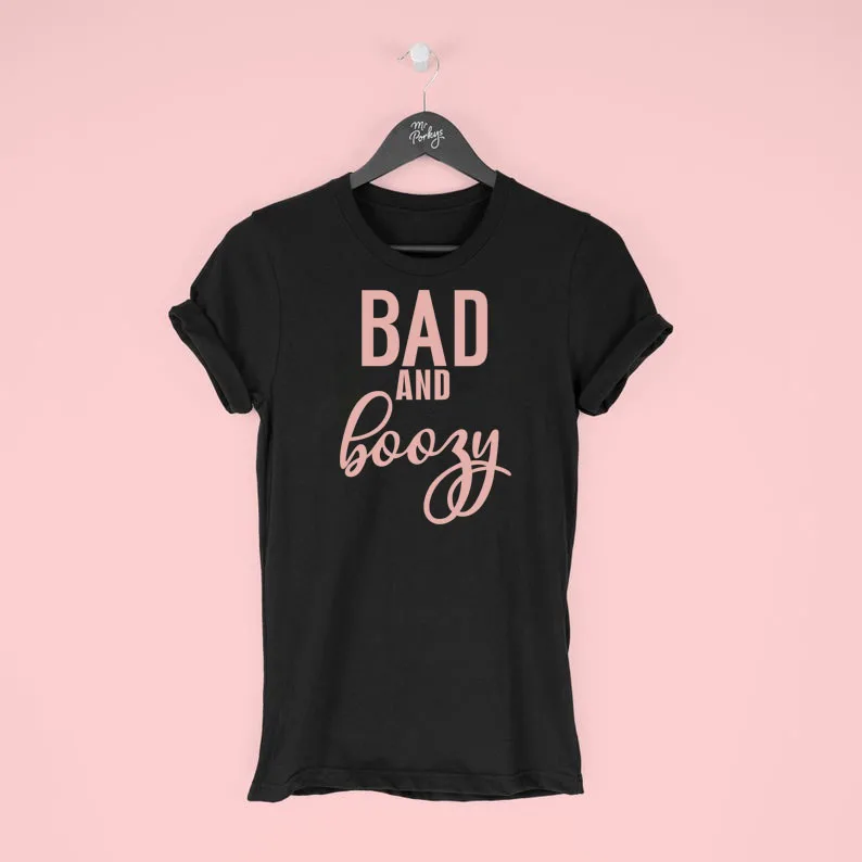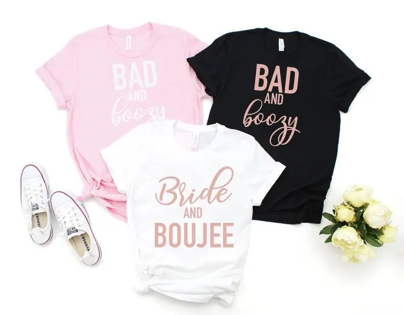 Невеста и Boujee плохой и Boozy девичник вечерние рубашка, Bad and Boujee девичник рубашка, свадебная рубашка, Сорочка Невесты на свадьбу