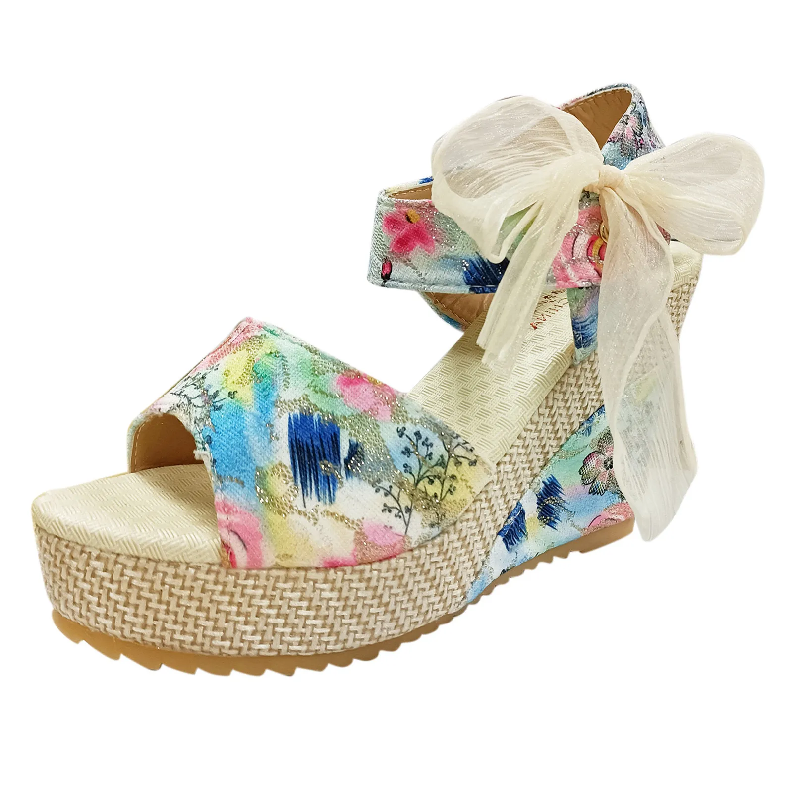 Сандалии SAGACE женские пляжные на танкетке, босоножки на платформе, с открытым носком, модная обувь на шнуровке с цветами