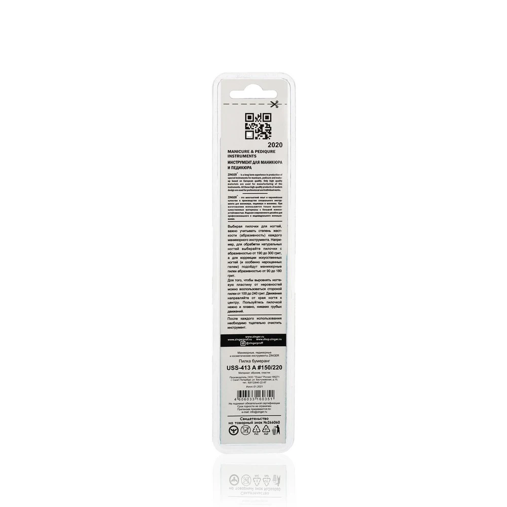 Пилка для маникюра Zinger USS-413 бумеранг 150220 GL BFY