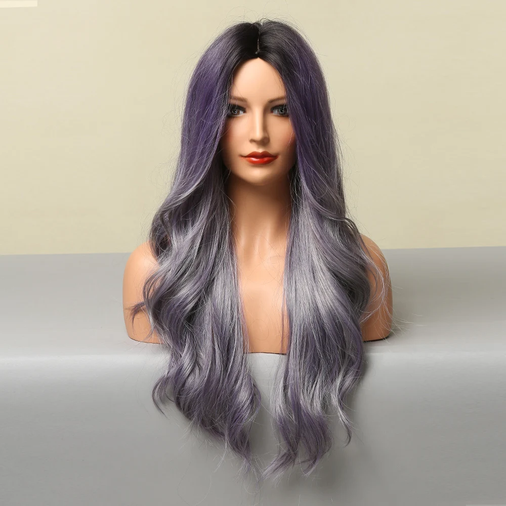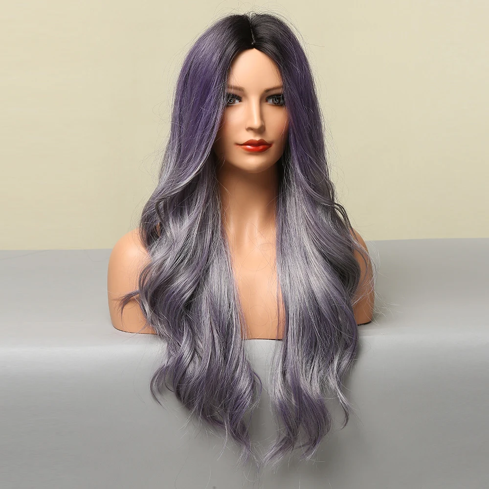 Женские длинные волнистые парики из термостойкого волокна, черного, фиолетового, пепельно-серого цвета, с эффектом деграде