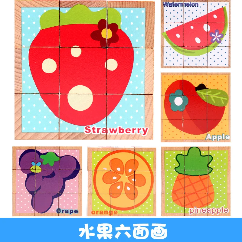 Деревянный шестисторонняя 9 шт. живописи детская 3D морских животных трафика строительные блоки раннего образования пазл игрушка-пазл для малышей игрушки