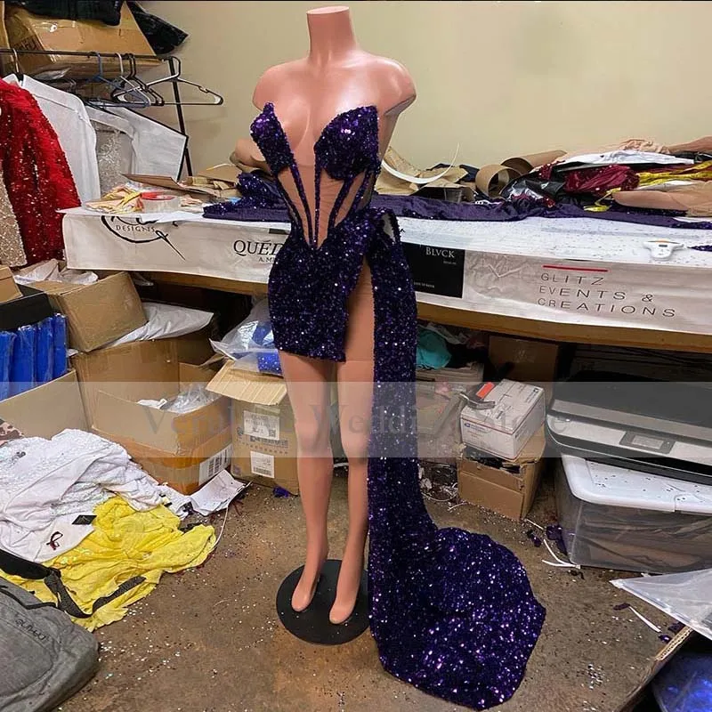Сексуальное блестящее фиолетовое платье с блестками для выпускного вечера 2021, выполненное на заказ